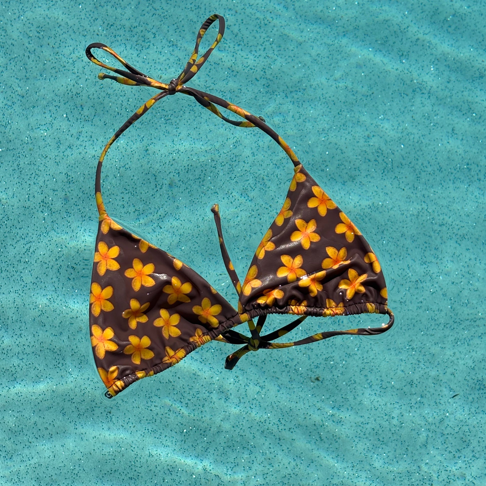 Completely adjustable tri top, with adjustable bust coverage as well as adjustable neck and back ties, this piece will hug your body in all the right places. Sizes ranging from S-XL